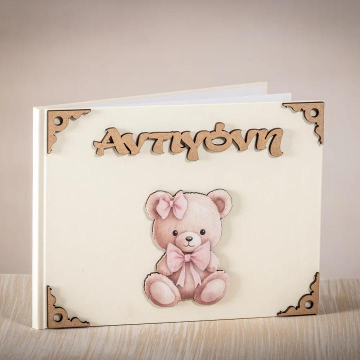 Αποτυπώστε τις ευχές για το μωράκι σας σε ένα ανθεκτικό βιβλίο ευχών βάπτισης, κατασκευασμένο από σκληρό χαρτόνι, εξασφαλίζοντας αντοχή στο χρόνο. Σας δίνετε η δυνατότητα να επιλέξετε εσείς οποιοδήποτε θέμα θέλετε για να δένει αρμονικά με το υπόλοιπο πακέτο βάπτισης.