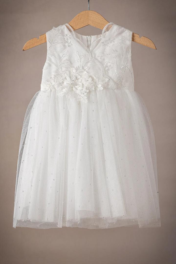 Ένα υπέροχο φορεματάκι βάπτισης για την μικρή σας πριγκίπισσα, φτιαγμένο από απαλά και δροσερά υφάσματα, που αγκαλιάζουν τρυφερά την ευαίσθητη επιδερμίδα του μωρού σας. Σε όλα μας τα φορεματάκια ράβουμε επιπλέον εσωτερική φόδρα από 100% βαμβάκι προσφέροντας άνεση και δροσιά. Το μπούστο και η φούστα του φορέματος είναι απο μαλακά τούλια, προσθέτοντας λάμψη και μοναδικότητα.