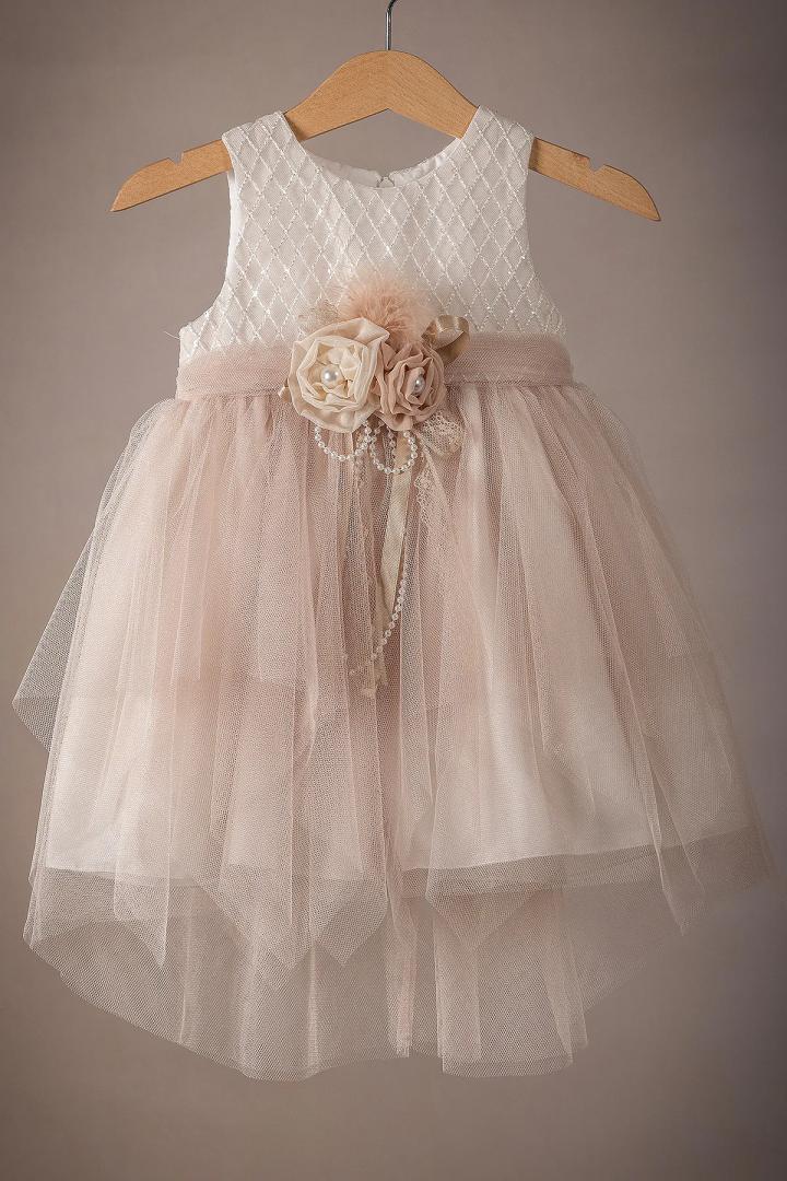 Ένα υπέροχο φορεματάκι βάπτισης για την μικρή σας πριγκίπισσα, φτιαγμένο από απαλά και δροσερά υφάσματα, που αγκαλιάζουν τρυφερά την ευαίσθητη επιδερμίδα του μωρού σας. Σε όλα μας τα φορεματάκια ράβουμε επιπλέον εσωτερική φόδρα από 100% βαμβάκι προσφέροντας άνεση και δροσιά. Το μπούστο του φορέματος είναι απο γκλιτεράτη δαντέλα και η φούστα είναι κατασκευασμένη από μαλακό γκλιτεράτο τούλι, προσθέτοντας λάμψη και μοναδικότητα.