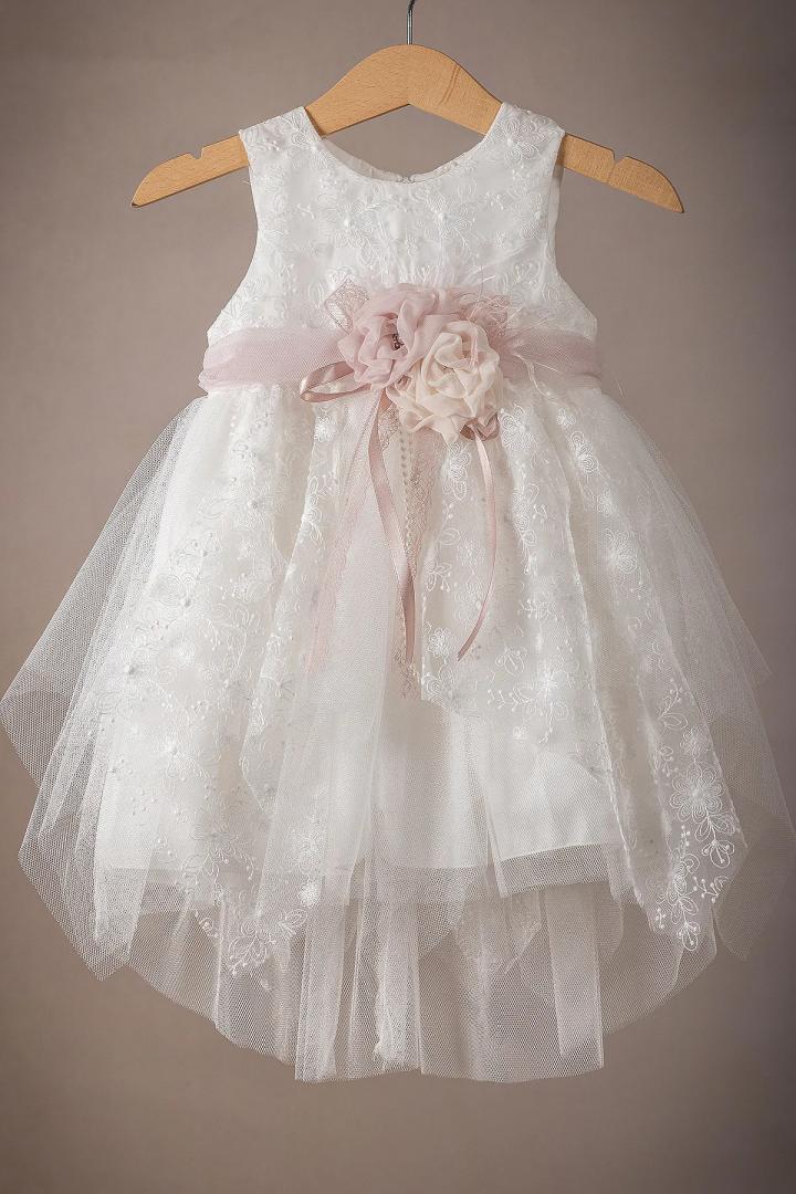 Ένα υπέροχο φορεματάκι βάπτισης για την μικρή σας πριγκίπισσα, φτιαγμένο από απαλά και δροσερά υφάσματα, που αγκαλιάζουν τρυφερά την ευαίσθητη επιδερμίδα του μωρού σας. Σε όλα μας τα φορεματάκια ράβουμε επιπλέον εσωτερική φόδρα από 100% βαμβάκι προσφέροντας άνεση και δροσιά. Το μπούστο του φορέματος είναι απο δαντέλα με παγιέτες και η φούστα είναι κατασκευασμένη από μαλακό τούλι, προσθέτοντας λάμψη και μοναδικότητα.