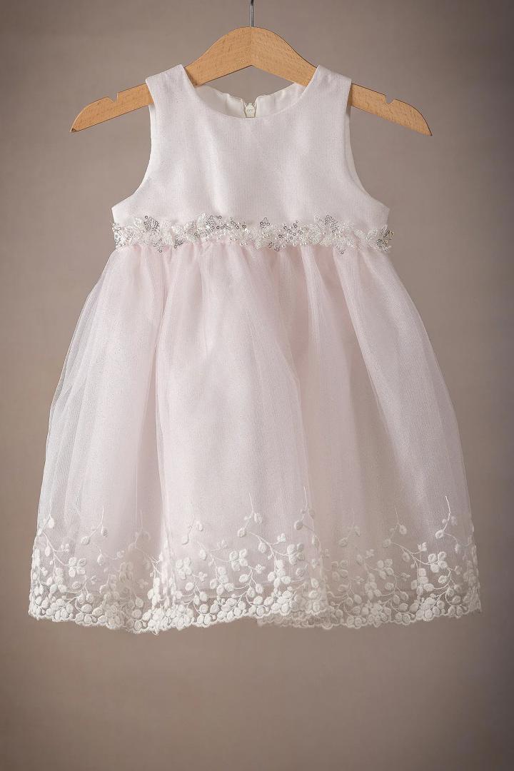 Ένα υπέροχο φορεματάκι βάπτισης για την μικρή σας πριγκίπισσα, φτιαγμένο από απαλά και δροσερά υφάσματα, που αγκαλιάζουν τρυφερά την ευαίσθητη επιδερμίδα του μωρού σας. Σε όλα μας τα φορεματάκια ράβουμε επιπλέον εσωτερική φόδρα από 100% βαμβάκι προσφέροντας άνεση και δροσιά. Το μπούστο του φορέματος είναι απο δαντέλα και η φούστα είναι κατασκευασμένη από δαντέλα με πεταλούδες, προσθέτοντας λάμψη και μοναδικότητα.