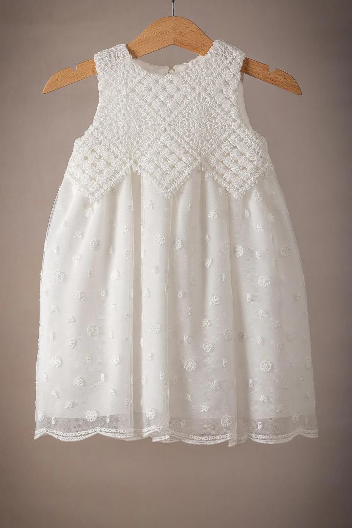 Ένα υπέροχο φορεματάκι βάπτισης για την μικρή σας πριγκίπισσα, φτιαγμένο από απαλά και δροσερά υφάσματα, που αγκαλιάζουν τρυφερά την ευαίσθητη επιδερμίδα του μωρού σας. Σε όλα μας τα φορεματάκια ράβουμε επιπλέον εσωτερική φόδρα από 100% βαμβάκι προσφέροντας άνεση και δροσιά. Ένα ριχτό φορεματάκι απο δαντέλα με κεντημένα λουλλούδια, προσφέροντας ένα αξέχαστο κομμάτι για τη βάπτιση της μικρής σας.