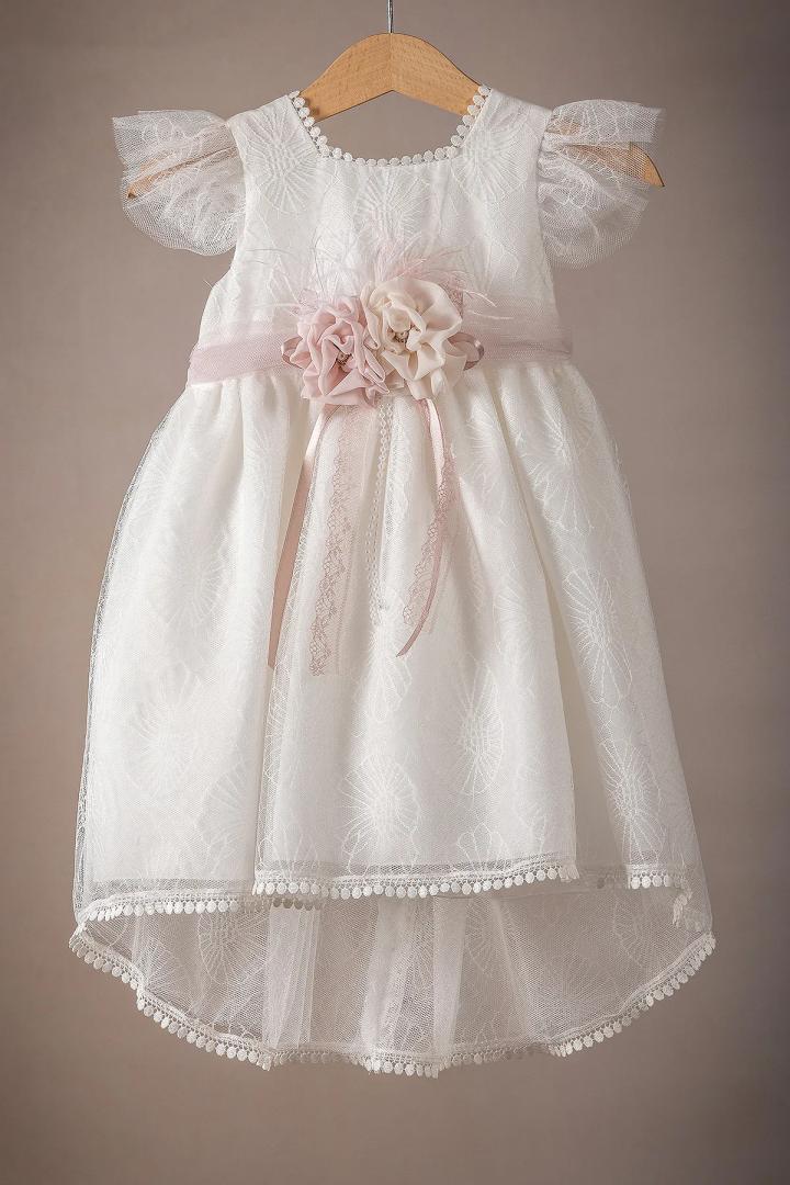 Ένα υπέροχο φορεματάκι βάπτισης για την μικρή σας πριγκίπισσα, φτιαγμένο από απαλά και δροσερά υφάσματα, που αγκαλιάζουν τρυφερά την ευαίσθητη επιδερμίδα του μωρού σας. Σε όλα μας τα φορεματάκια ράβουμε επιπλέον εσωτερική φόδρα από 100% βαμβάκι προσφέροντας άνεση και δροσιά. Το μπούστο του φορέματος είναι απο δαντέλα με πουά κέντημα και η φούστα είναι κατασκευασμένη από δαντέλα με πεταλούδες, προσθέτοντας λάμψη και μοναδικότητα.