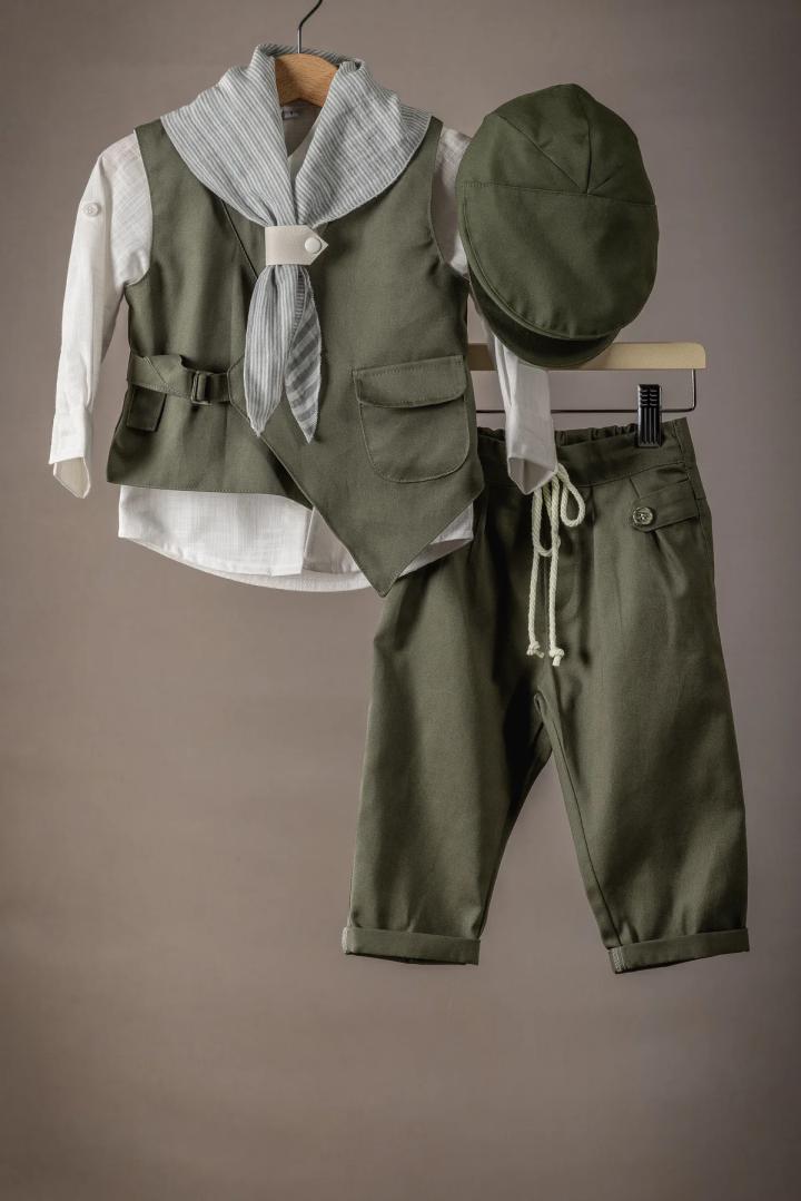 Ένα κομψό κουστούμι βάπτισης για τον μικρό σας άγγελο φτιαγμένο με άριστης ποιότητας υφάσματα, ιδανικό για την ευαίσθητη επιδερμίδα του μωρού σας, εξασφαλίζοντας άνεση και στυλ για την ξεχωριστή αυτή ημέρα. Παντελόνι: Κατασκευασμένο από απαλή βαμβακερή καμπαρτίνα. Το παντελόνι έχει άνετη γραμμή και διαθέτει λάστιχο στη μέση για τέλεια εφαρμογή. Γιλέκο και Πουκάμισο: Φτιαγμένα από άριστης ποιότητας 100% βαμβάκι