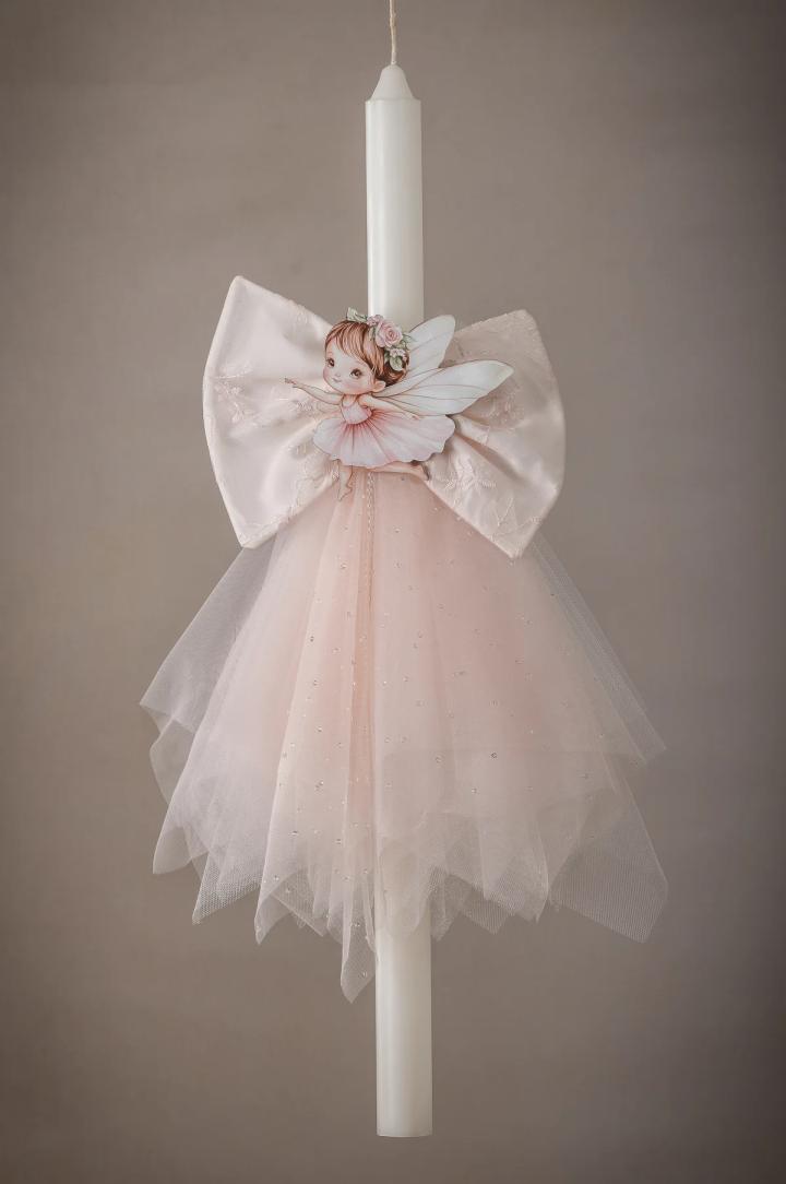 Φινετσάτη, πλούσια σε στολισμό λαμπάδα βάπτισης που συνδυάζεται άψογα με φορεματάκια της συλλογής μας. Διακοσμείται από χειροποίητα λουλούδια και κορδέλες σε χρωματισμούς που ταιριάζουν απόλυτα με το φορεματάκι που επιλέξατε.