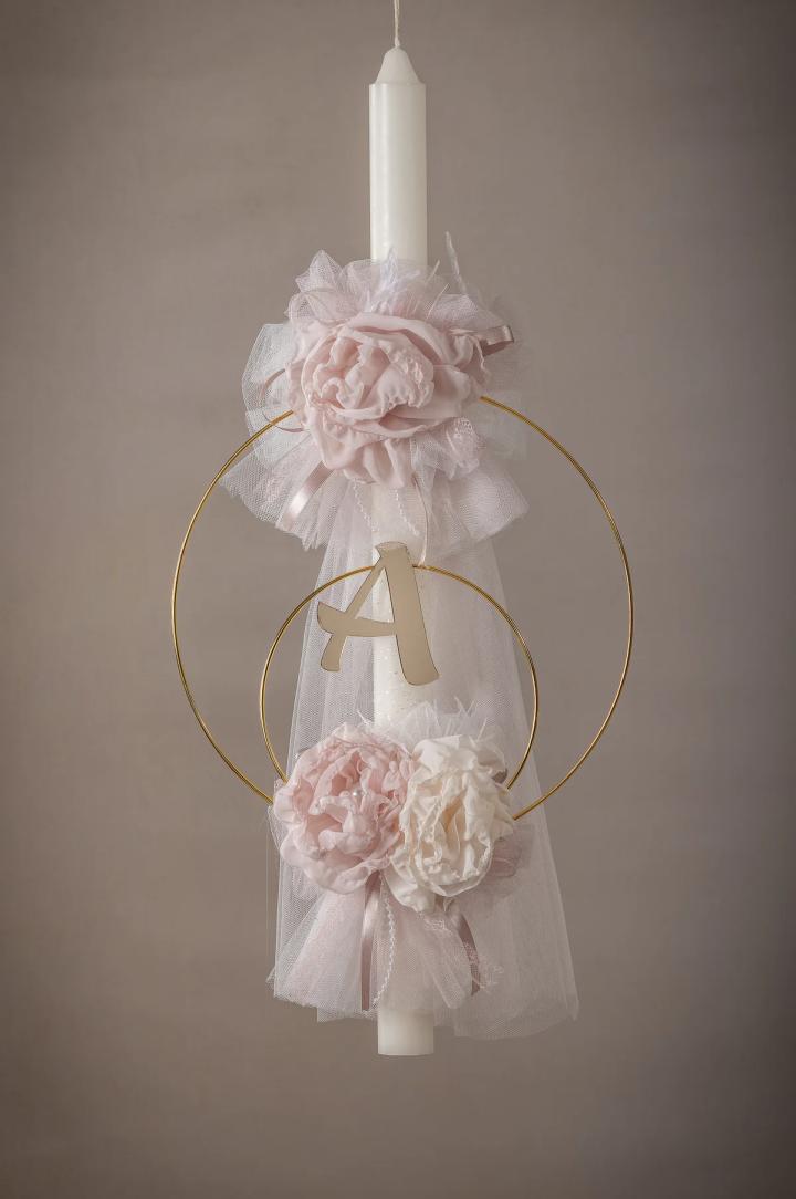 Αυτή η λαμπάδα είναι ο τέλειος συνδυασμός με τα φορεματάκια της συλλογής μας. Ο στολισμός που την διακοσμεί είναι συναρμολογημένος με υλικά που ταιριάζουν απόλυτα με το φορεματάκι που επιλέξατε, δημιουργώντας ένα ολοκληρωμένο και συνεκτικό στυλ. Επιπλέον, δίνουμε σε εσάς τη δυνατότητα να επιλέξετε το θέμα που επιθυμείτε, εξατομικεύοντας τη λαμπάδα βάπτισης σύμφωνα με τις προτιμήσεις και το στυλ της βάπτισης σας.