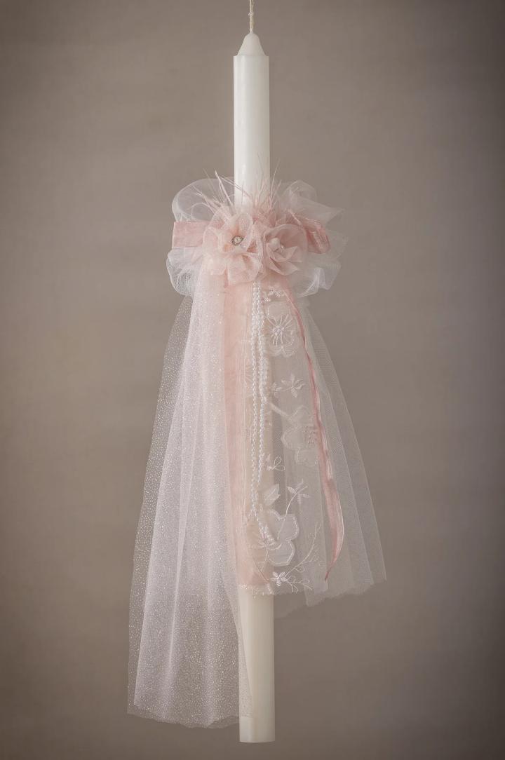 Αυτή η λαμπάδα είναι ο τέλειος συνδυασμός με τα φορεματάκια της συλλογής μας. Ο στολισμός που την διακοσμεί είναι συναρμολογημένος με υλικά που ταιριάζουν απόλυτα με το φορεματάκι που επιλέξατε, δημιουργώντας ένα ολοκληρωμένο και συνεκτικό στυλ.
