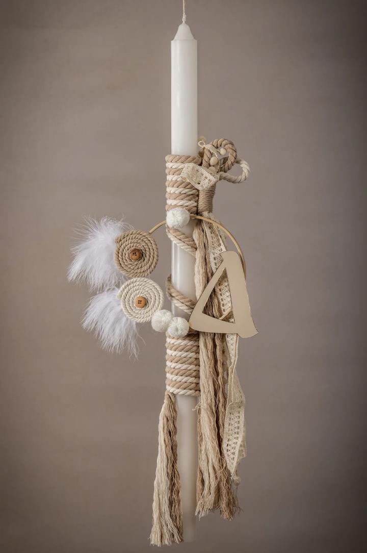 Μια εντυπωσιακή λαμπάδα βάπτισης, κατασκευασμένη από χειροποίητους φιόγκους δημιουργημένοι από τα ίδια υφάσματα που επιλέξατε για το κουστούμι του μωρού σας, δημιουργώντας ένα αρμονικό πακέτο που θα εντυπωσιάσει. Επιπλέον, σας δίνουμε τη δυνατότητα να επιλέξετε το θέμα που επιθυμείτε, εξατομικεύοντας έτσι τη λαμπάδα σύμφωνα με τις προτιμήσεις και το στυλ της βάπτισης σας.
