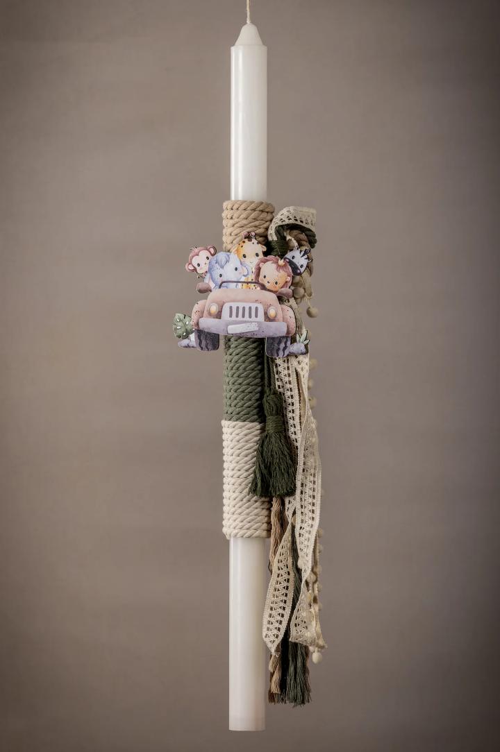 Μια εντυπωσιακή λαμπάδα βάπτισης, κατασκευασμένη από χειροποίητους φιόγκους δημιουργημένοι από τα ίδια υφάσματα που επιλέξατε για το κουστούμι του μωρού σας, δημιουργώντας ένα αρμονικό πακέτο που θα εντυπωσιάσει. Επιπλέον, σας δίνουμε τη δυνατότητα να επιλέξετε το θέμα που επιθυμείτε, εξατομικεύοντας έτσι τη λαμπάδα σύμφωνα με τις προτιμήσεις και το στυλ της βάπτισης σας.