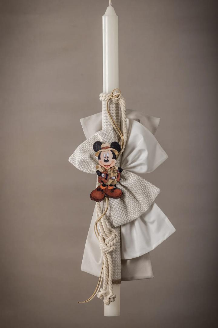 Μια εντυπωσιακή λαμπάδα βάπτισης, κατασκευασμένη από χειροποίητους φιόγκους δημιουργημένοι από τα ίδια υφάσματα που επιλέξατε για το κουστούμι του μωρού σας, δημιουργώντας ένα αρμονικό πακέτο που θα εντυπωσιάσει. Επιπλέον, σας δίνουμε τη δυνατότητα να επιλέξετε το θέμα που επιθυμείτε, εξατομικεύοντας έτσι τη λαμπάδα σύμφωνα με τις προτιμήσεις και το στυλ της βάπτισης σας.