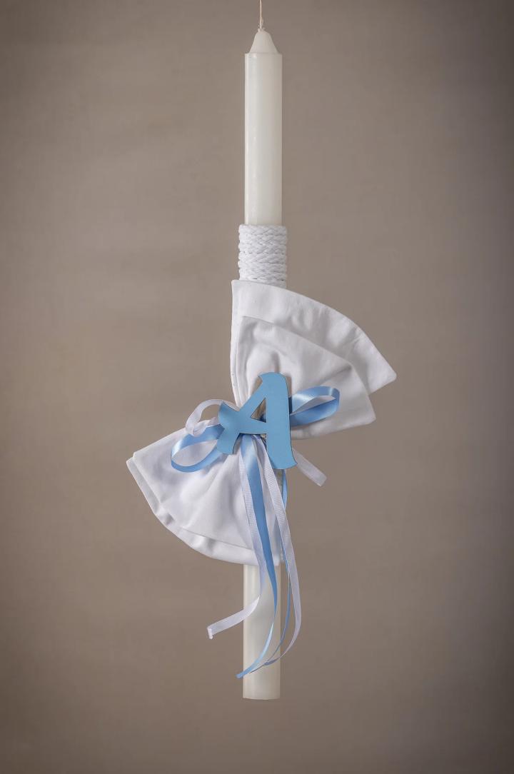 Απλή, λιτή αλλά ταυτόχρονα εντυπωσιακή λαμπάδα κατασκευασμένη από βαμβακερή καμπαρτίνα με κεντημένο το μονόγραμμα επιλεγμένα με προσοχή για να ταιριάζουν απόλυτα με τα φορέματα της συλλογής μας, δημιουργώντας ένα αρμονικό και εντυπωσιακό αποτέλεσμα.