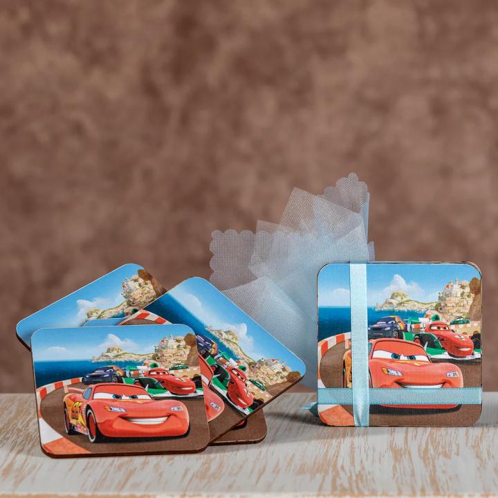 Ξύλινη μπομπονιέρα Βάπτισης (Coaster) που κατασκευάζεται στο θέμα της επιλογής σας.