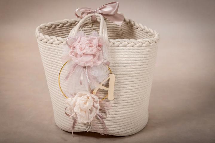 Μια πρωτότυπη λύση για τη μεταφορά των απαραίτητων στην εκκλησία, που συνδυάζει λειτουργικότητα και στυλ με ένα μοναδικό τρόπο. Πρόκειται για ένα πλεκτό καλάθι από βαμβακερό νήμα, το οποίο προσφέρει μια φρέσκια και φιλική προς το περιβάλλον επιλογή. Ο στολισμός του καλαθιού συνδυάζεται άψογα με τη λαμπάδα που επιλέξατε, δημιουργώντας ένα συνεχές και αρμονικό αποτέλεσμα. Μετά από τη βάπτιση, μπορεί επίσης να λειτουργήσει ως μια όμορφη θήκη αποθήκευσης ή ακόμα και τσάντα μεταφοράς προσωπικών αντικειμένων.