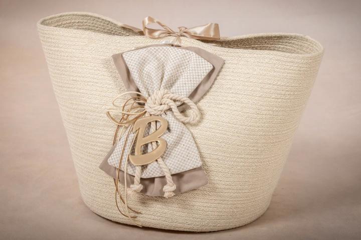 Μια πρωτότυπη λύση για τη μεταφορά των απαραίτητων στην εκκλησία, που συνδυάζει λειτουργικότητα και στυλ με ένα μοναδικό τρόπο. Πρόκειται για ένα πλεκτό καλάθι από βαμβακερό νήμα, το οποίο προσφέρει μια φρέσκια και φιλική προς το περιβάλλον επιλογή. Ο στολισμός του καλαθιού συνδυάζεται άψογα με τη λαμπάδα που επιλέξατε, δημιουργώντας ένα συνεχές και αρμονικό αποτέλεσμα. Μετά από τη βάπτιση, μπορεί επίσης να λειτουργήσει ως μια όμορφη θήκη αποθήκευσης ή ακόμα και τσάντα μεταφοράς προσωπικών αντικειμένων.